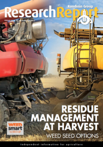 - Capture weed seed survivors at harvest using weed seed impact mills, chaff lining, chaff tramlining/decking, chaff carts, narrow windrow burning, or bale direct.