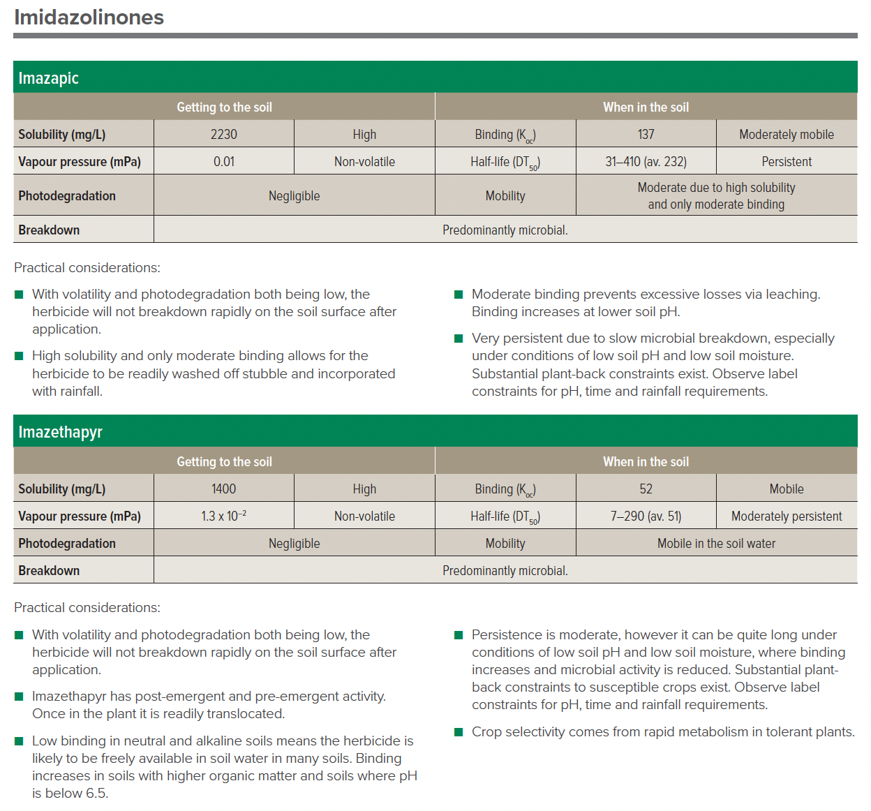 A wide range of soil characteristics and environmental conditions affect the efficacy and behaviour of soil-applied Group 2 herbicides.