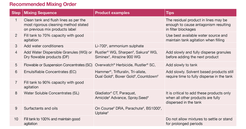 “If operators follow a few guiding principles it is possible to safely mix a complex combination of herbicides, insecticides and even crop nutrients,” he says. “But it is also quite easy to end up with a tank of sludge that can not be sprayed out, if you don’t take the time to get it right.”